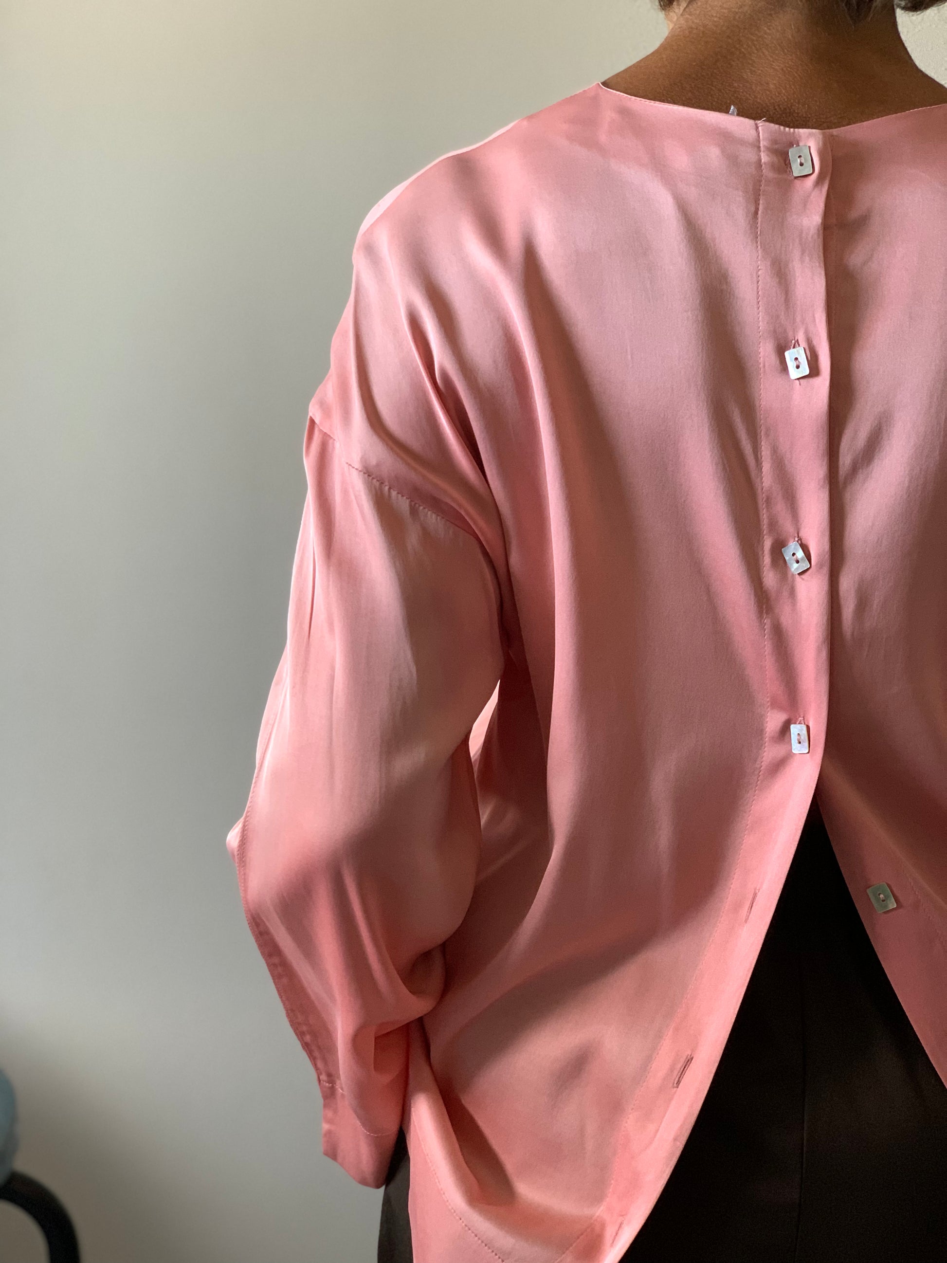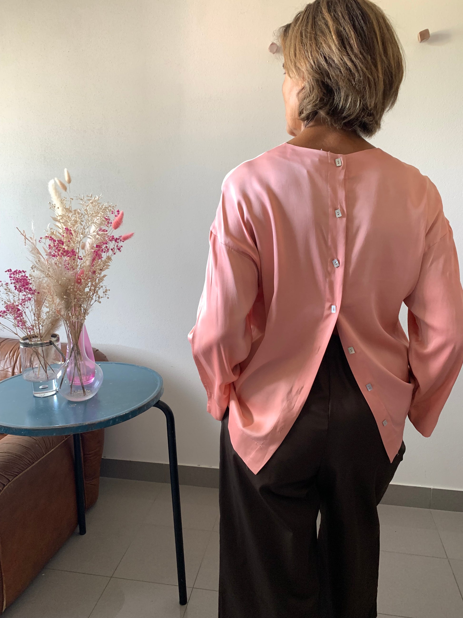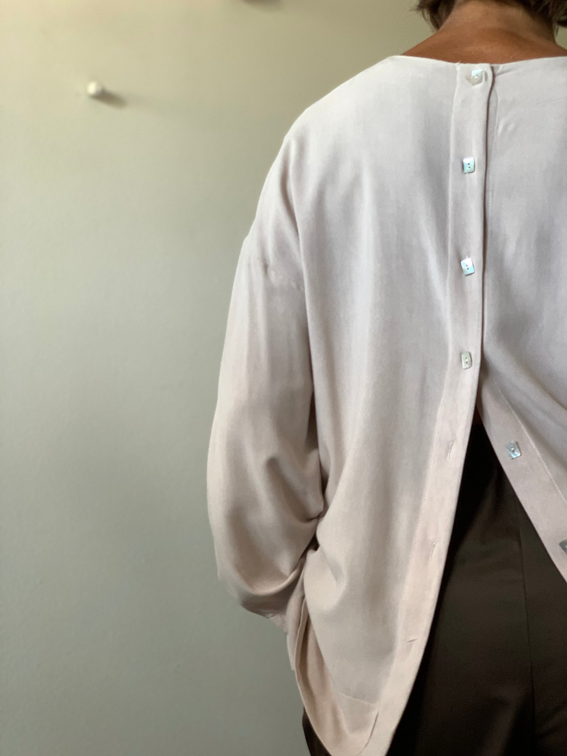 abbottonatura sul retro, può essere portata più o meno chiusa a seconda dell’effetto desiderato.